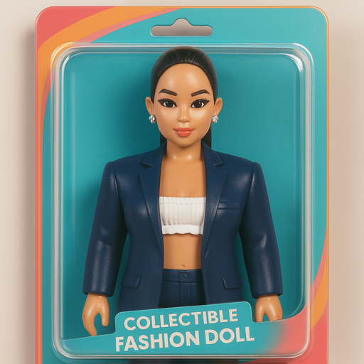 Business Attire, Collectible, Colorful, Commercial, Consumer Product, Fashion Doll, Modern, Packaging, Pop Art, Premium, Product Photography, Retail Display, Toy